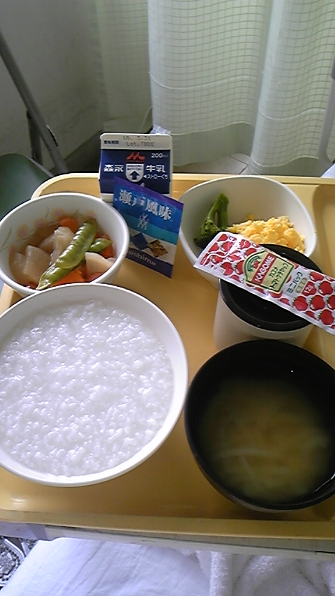 病院食も見納めかあ、と朝食を撮ってみた。