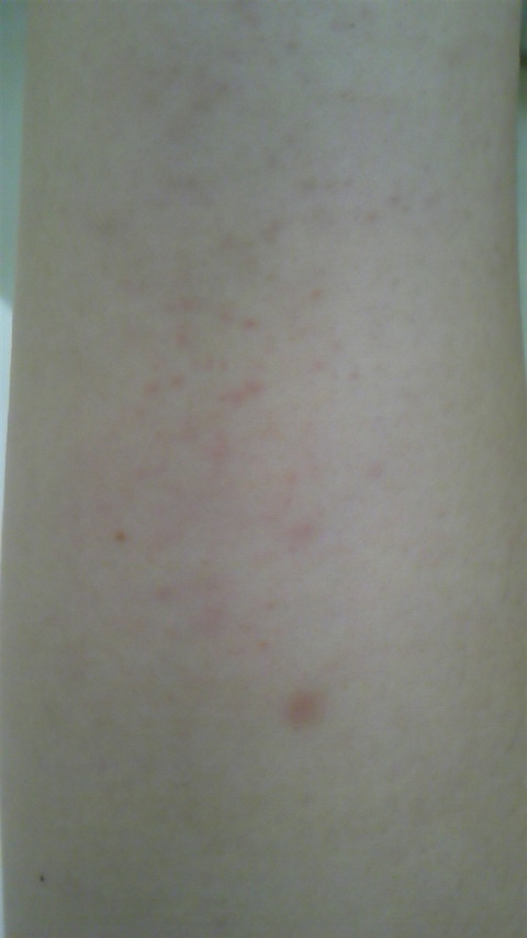 判りますか腕の赤い斑点が!